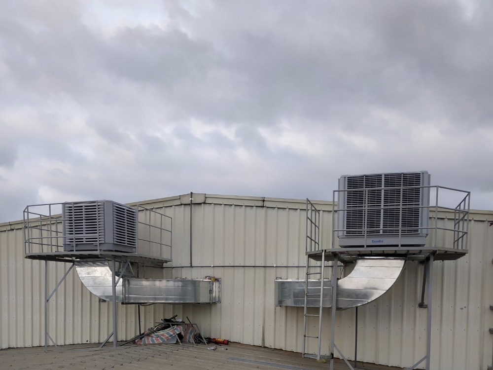 1. TẤM LÀM MÁT CÔNG NGHIỆP 1.1 Khái niệm Tấm làm mát công nghiệp được làm chủ yếu từ Polyme cao phân tử kết hợp với công nghệ lưu hóa hiện đại. Tấm làm mát cooling pad được thiết kế hình gợn sóng, xếp chồng lên nhau tạo thành cấu trúc hình tổ ong. Bên ngoài được phủ lớp tôn mạ kẽm không gỉ, phía trên cùng là hệ thống phun nước. Nước sẽ chảy theo khe giữa các vách ngăn tiếp xúc. Từ đó không khí được làm mát trước khi được đưa vào nhà xưởng. Tấm làm mát công nghiệp hoạt động theo nguyên lý: Không khí từ ngoài được hút vào đi qua tấm làm mát công nghiệp (cooling pad) được tưới ướt sẽ được làm mát không khí. Tiếp đó, nó sẽ lọc sạch bụi bẩn bên ngoài, đem lại luồng khí mới mát hơn, sạch hơn cho nhà xưởng. 1.2 Phân loại Tấm làm mát công nghiệp được chia làm 2 loại Tấm làm mát công nghiệp tiêu chuẩn Tấm làm mát công nghiệp chống rêu 1.3 Công dụng Tấm làm mát công nghiệp ( cooling pad ) là nơi không khi tiếp xúc trực tiếp với nước, trao đổi nhiệt làm giảm nhiệt độ từ 5-7 độ C. Tấm làm mát công nghiệp ( cooling pad ) được sử dụng kết hợp với quạt hút công nghiệp, máy làm mát công nghiệp, để làm mát nhà xưởng, làm giảm nhiệt độ trong phòng. Tấm làm mát công nghiệp ( cooling pad ) được sử dụng trong các nhà máy, xưởng, chuồng trại, nhà kính... Đối với hệ thống làm mát, tấm làm mát là một thành phần quan trọng để tăng hiệu quả làm mát cho nhà xưởng 2. MỘT SỐ YÊU CẦU KHI THIẾT KẾ VÀ LẮP ĐẶT HỆ THỐNG TẤM LÀM MÁT CÔNG NGHIỆP CHO NHÀ XƯỞNG Khi thiết kế và lắp đặt hệ thống làm mát công nghiệp cho nhà xưởng, bạn cần phải lưu ý một số vấn đề sau: – Cần quan sát kết cấu nhà xưởng, diện tích, thiết bị máy móc hoạt động và số công nhân làm việc trong nhà xưởng để đưa ra phương án thiết kế phù hợp. – Quy trình lắp đặt cần đảm bảo đúng yêu cầu kỹ thuật. Từ đó để tăng hiệu quả làm mát từ tấm làm mát công nghiệp, độ ẩm cần thiết và tính thẩm mỹ cho nhà xưởng. – Phải luôn kiểm soát được độ ẩm trong nhà xưởng. Vì khi sử dụng hệ thống làm mát bằng tấm làm mát công nghiệp thì độ ẩm trong không khí sẽ rất ít. Nên bạn cần phải cân bằng độ ẩm để tránh độ ẩm tăng quá cao sẽ làm hư hại máy móc. – Nên bố trí khung tấm làm mát công nghiệp đối diện với hệ thống quạt hút, hoặc bên hông tường, nguyên tắc làm sao toàn bộ lượng khí lưu thông đều đi qua tấm, để giảm nhiệt độ – Kết hợp nhiều tấm làm mát cần bộ khung inox và hệ thống bơm nước , thu hồi nước tuần hoàn. – Nên vệ sinh 6 tháng /1 lần để tránh bụi bám gây tắc đường sóng dẫn nước, giảm hiệu quả làm mát của tấm làm mát công nghiệp 3. TÍNH NĂNG NỔI BẬT CỦA TẤM LÀM MÁT CÔNG NGHIỆP TRONG HỆ THỐNG LÀM MÁT NHÀ XƯỞNG Chi phí đầu tư thấp, làm mát với quy mô lớn phù hợp với nhà xưởng có diện tích lớn. Làm mát nhanh và ổn định, có thể hạ nhiệt từ 5-7 độ C so với bên ngoài và tiết kiệm điện năng hiệu quả. Tạo môi trường làm việc tươi mát, trong lành, giù khí oxy, ít bụi và đảm bảo sức khỏe cho con người. Chi phí lắp đặt thấp, công tác lắp đặt tấm làm mát công nghiệp không làm ảnh hưởng đến kết cấu nhà xưởng. Và quá trình bảo dưỡng sau này cũng rất đơn giản. Vận hành hệ thống khá đơn giản và linh hoạt.