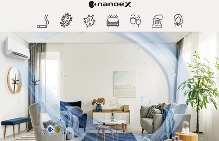 Bộ phát nanoe-G tạo ra 3 nghìn tỷ ion âm mỗi giây. Các hạt này giúp loại bỏ vi sinh vật và các hạt nụi nhỏ như PM2.5 khỏi không khí. Từ đó lọc sạch môi trường sống, mang đến cho người dùng không gian trong lành nhất. Nanoe-G có thể loại bỏ 90% các hạt PM2.5 trong 80 phút