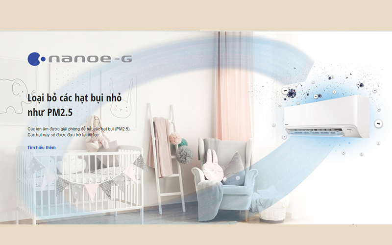 Công nghệ Nanoe-G tích hợp chức năng khử mùi, diệt khuẩn ức chế sự phát triển của vi khuẩn, virut, nấm mốc, loại bỏ hiệu quả bụi mịn lên đến 99,9% mang lại không gian sống trong lành cho gia đình bạn