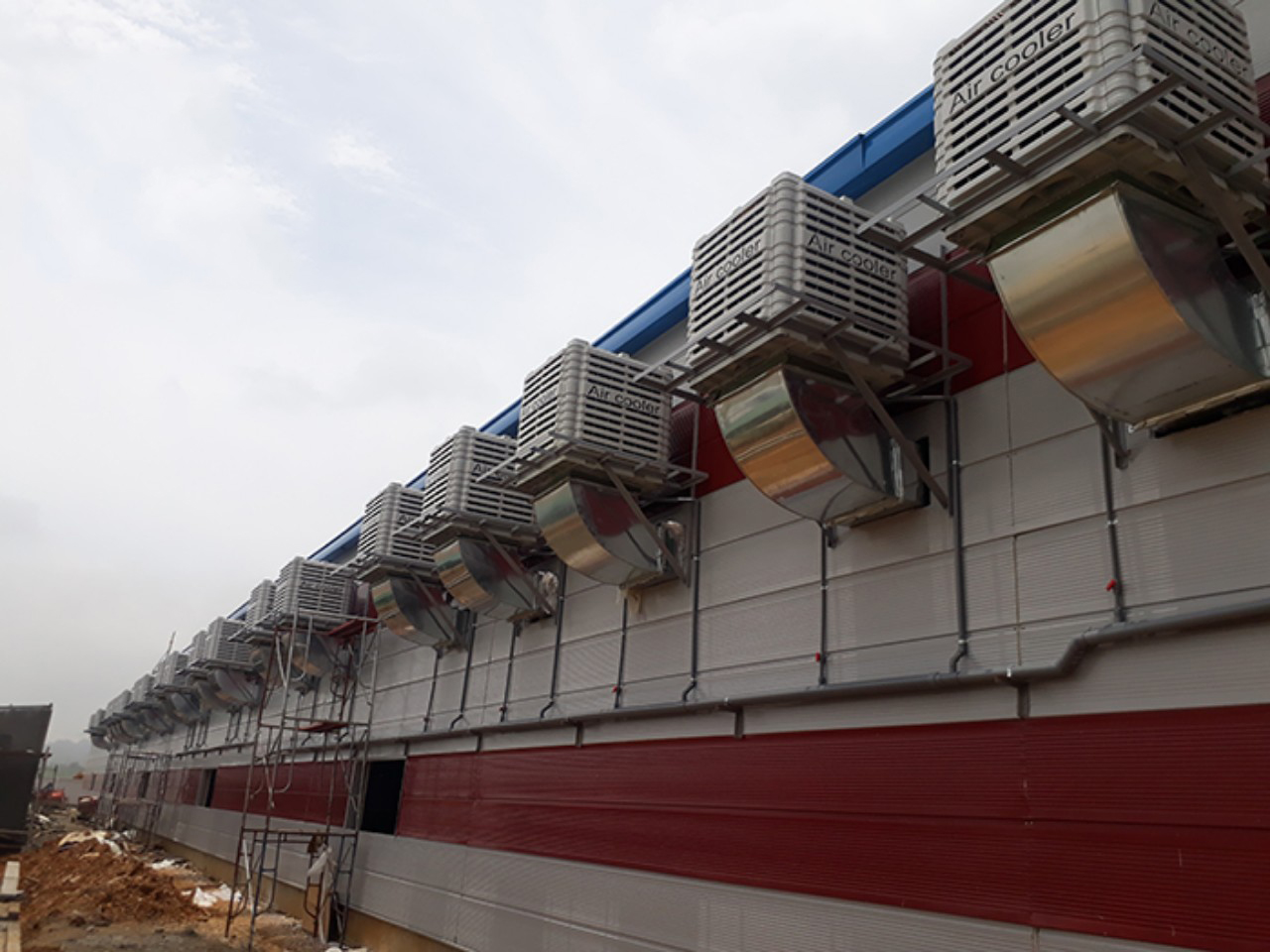 Máy làm mát công nghiệp nhà xưởng tại Phú Thọ kết hợp với hệ thống ống gió và cửa gió làm mát cho: